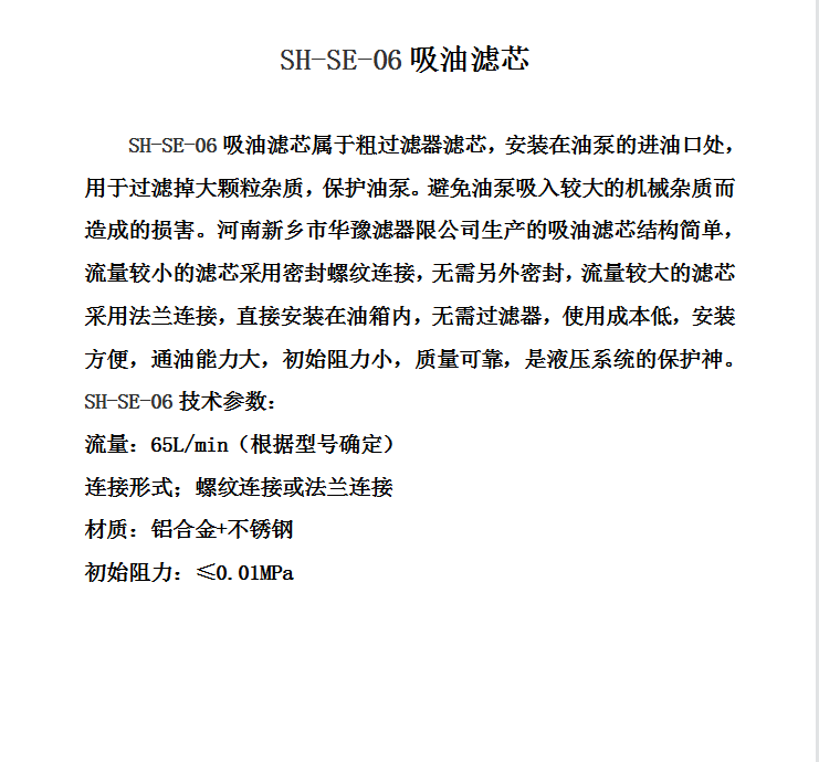 韓國SHC吸油濾芯SH-SE-06